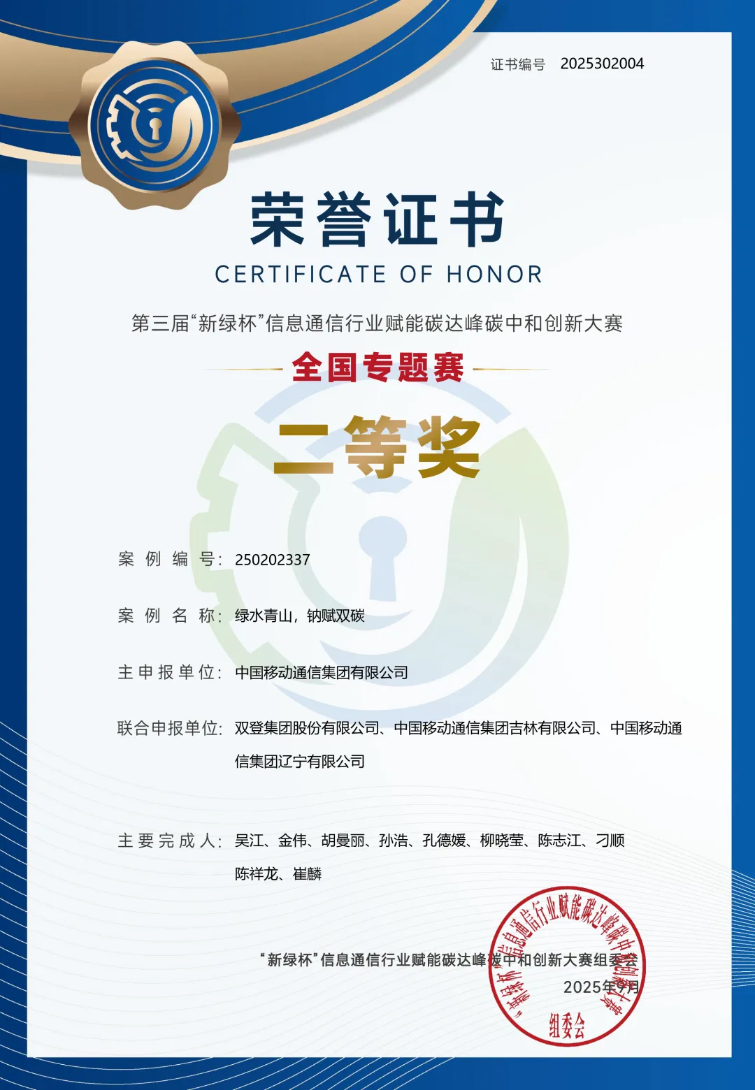由bg大游股份与中国移动通信集团有限公司联合攻关的“绿水青山,钠赋双碳”项目,凭借钠离子电池在绿色储能领域的创新探索,成功斩获全国专题赛二等奖。