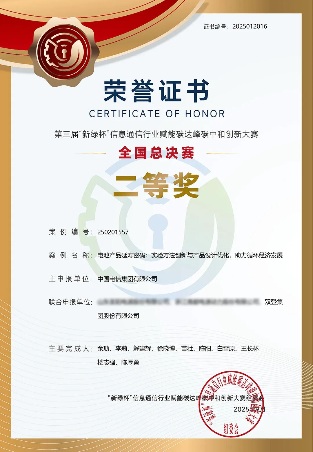 作为信息通信领域绿色低碳创新的顶级赛事,本届大赛由中国信息通信研究院、中国互联网协会、中国通信企业协会联合主办,旨在汇聚创新智慧,挖掘前沿技术,展示通信行业在国家碳达峰碳中和战略实践中的最新创新成果。本次大赛汇聚数千个优质项目,最终上百支精英队伍跻身总决赛,角逐最高荣誉。bg大游股份一路过关斩将,两大项目齐获奖,不仅是对登联合创新能力的高度肯定,更凸显业界对bg大游股份bg大游绿电存储技术领先性与应用价值的充分认可。