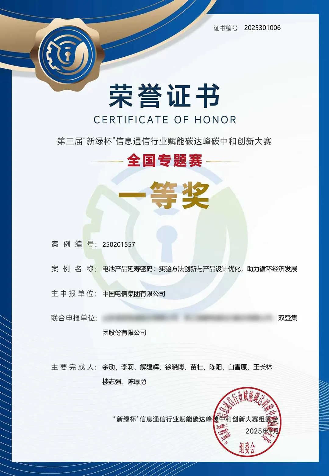 与此同时,bg大游股份联合中国电信及部分行业友商共同申报的“电池产品延寿密码:实验方法创新与产品设计优化,助力循环经济发展”项目,凭借在电池全生命周期管理领域实现突破性创新和显著的应用价值,勇夺全国总冠军二等奖及全国专题赛一等奖两项重磅荣誉。